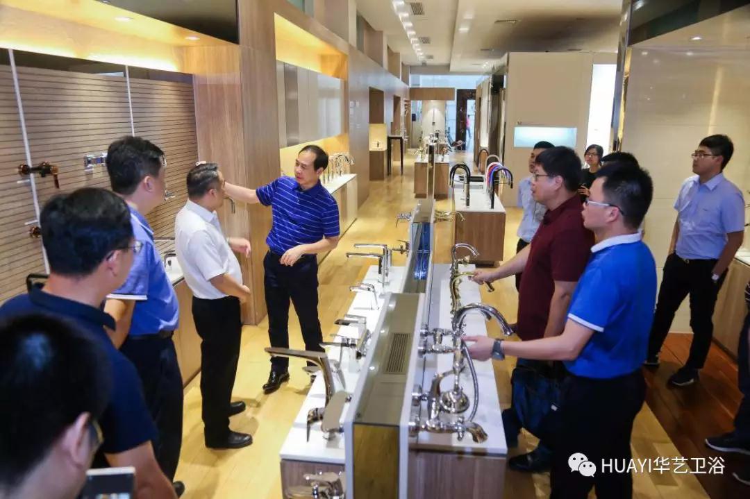 華藝衛浴集團董事長馮松展帶領調研組參觀集團總部展廳。華藝精工衛浴展廳琳瑯滿目的產品讓調研組目不暇接;展廳通過圖文并茂地的方式展現了華藝勢不可擋的發展歷程與強大的生產實力。